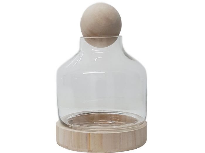 🌿 Elegant, rounded glass dome with wooden base and lid