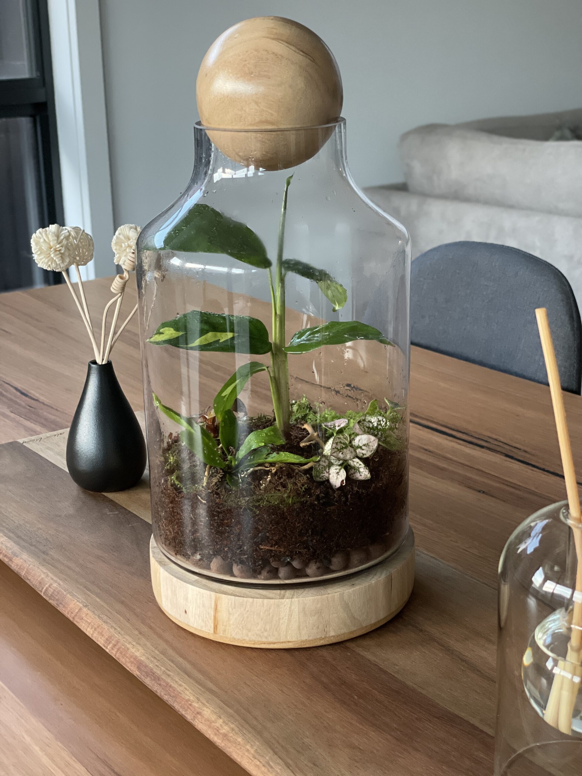 🪴 Glass Only: Includes the glass dome, solid wood base, and ball lid – ready for your own build