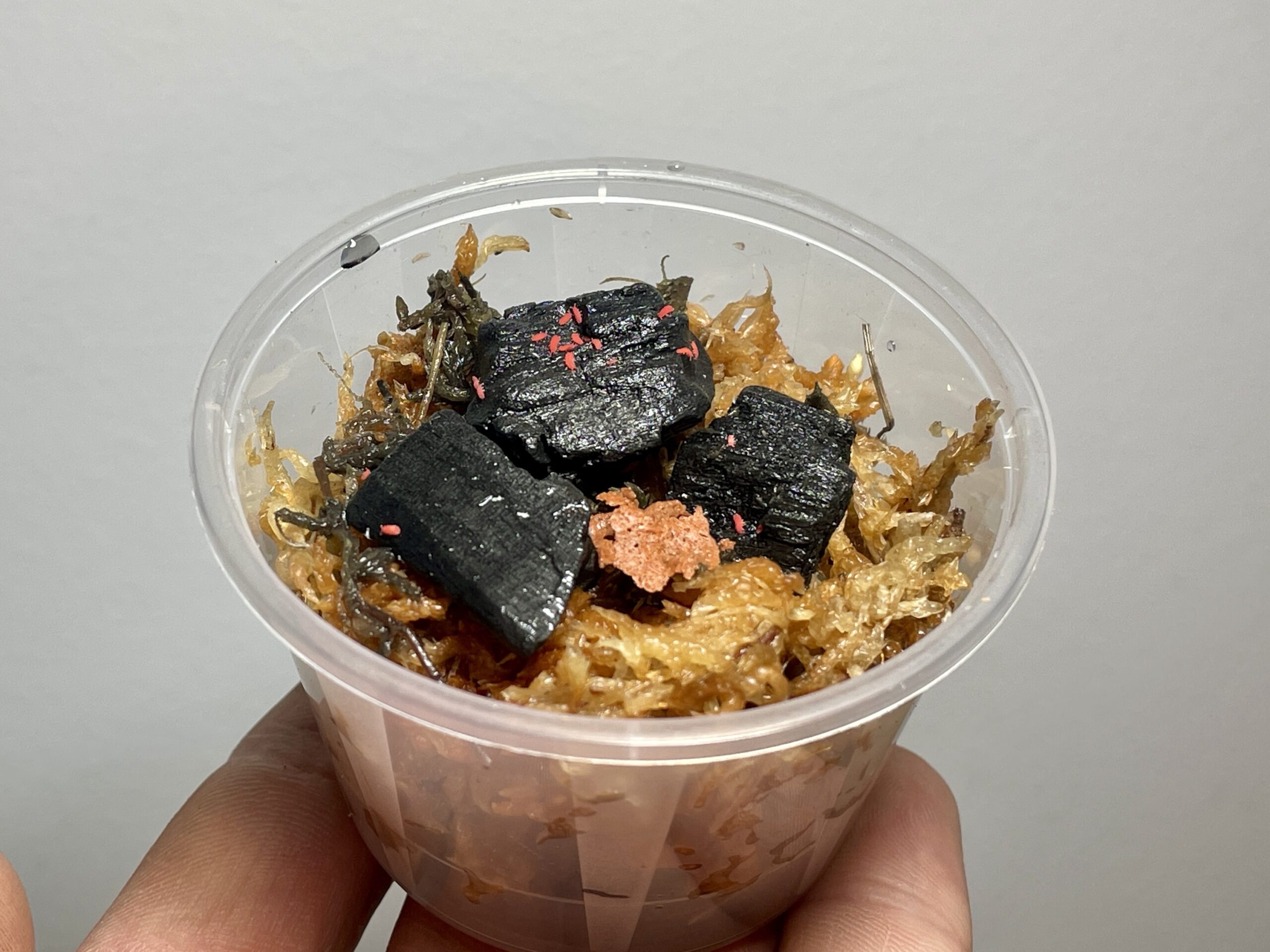 📦 Packaging: Moist sphagnum moss / coco coir & charcoal in a 100ml plastic container